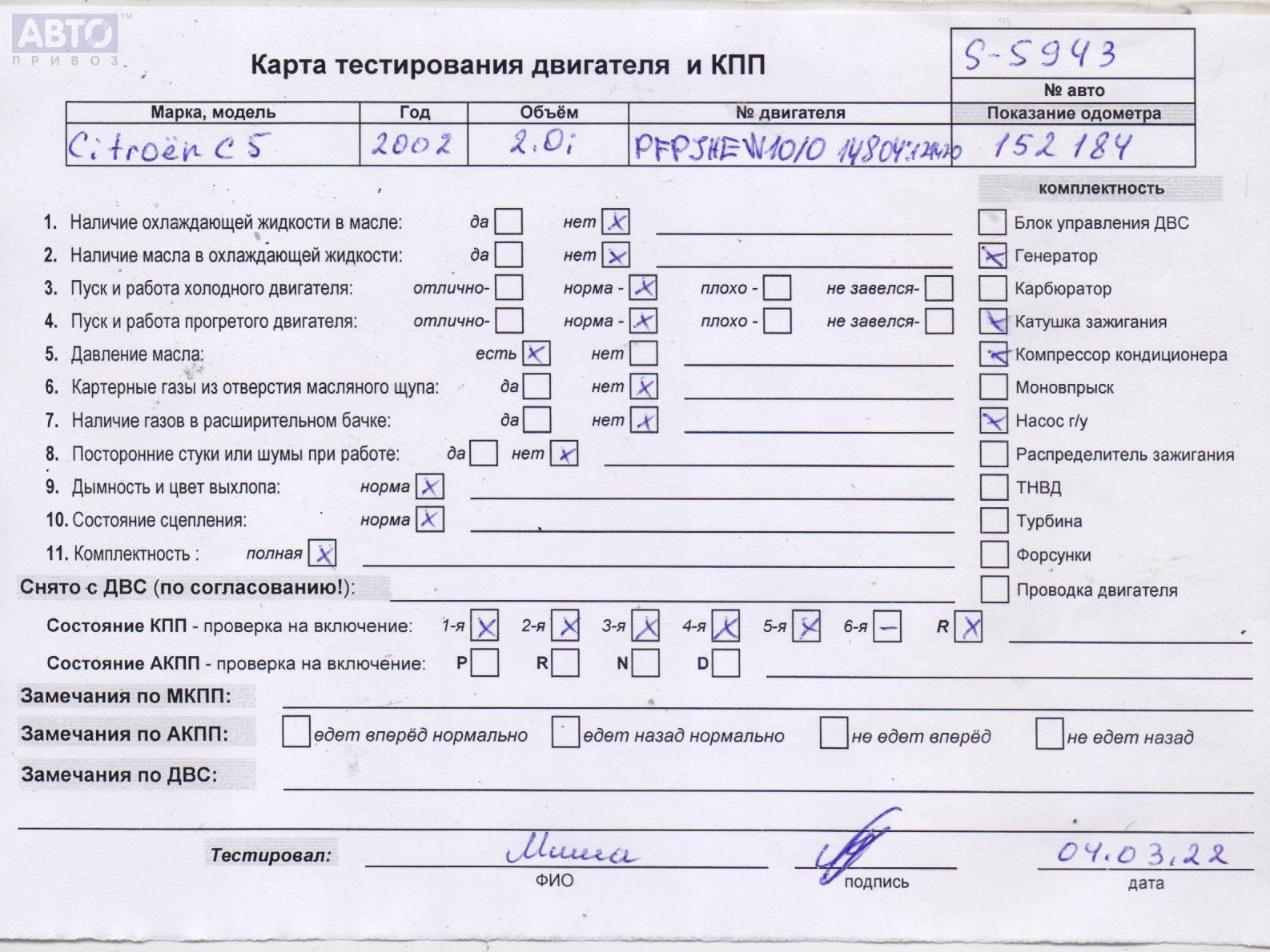 | Марка / Модель / Год: | Citroen C5 (2001-2008) 2002 |
