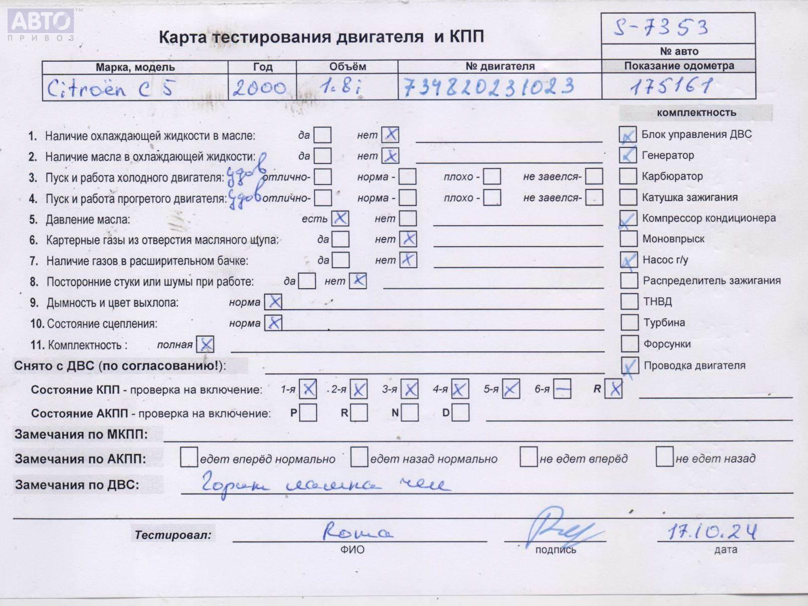| Автомобиль / VIN: | S7353 VF7DC6FZC76011452 |