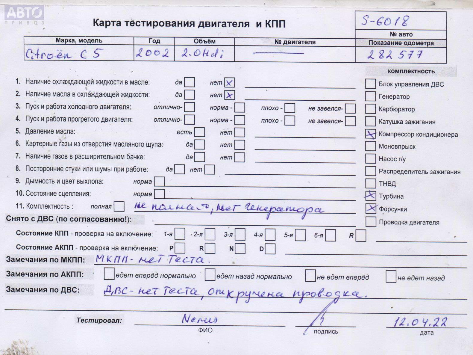 | Марка / Модель / Год: | Citroen C5 (2001-2008) 2002 |