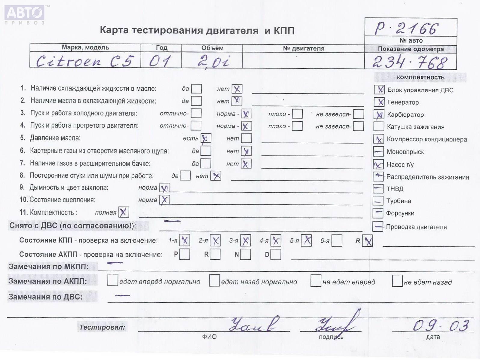 | Автомобиль / VIN: | P2166 VF7DC6FZC76298000 |