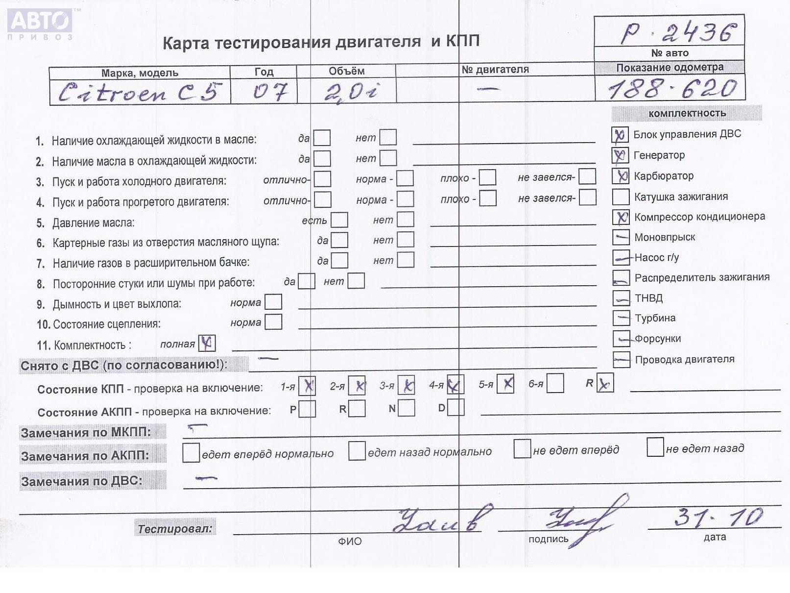 | Марка / Модель / Год: | Citroen C5 (2001-2008) 2007 |