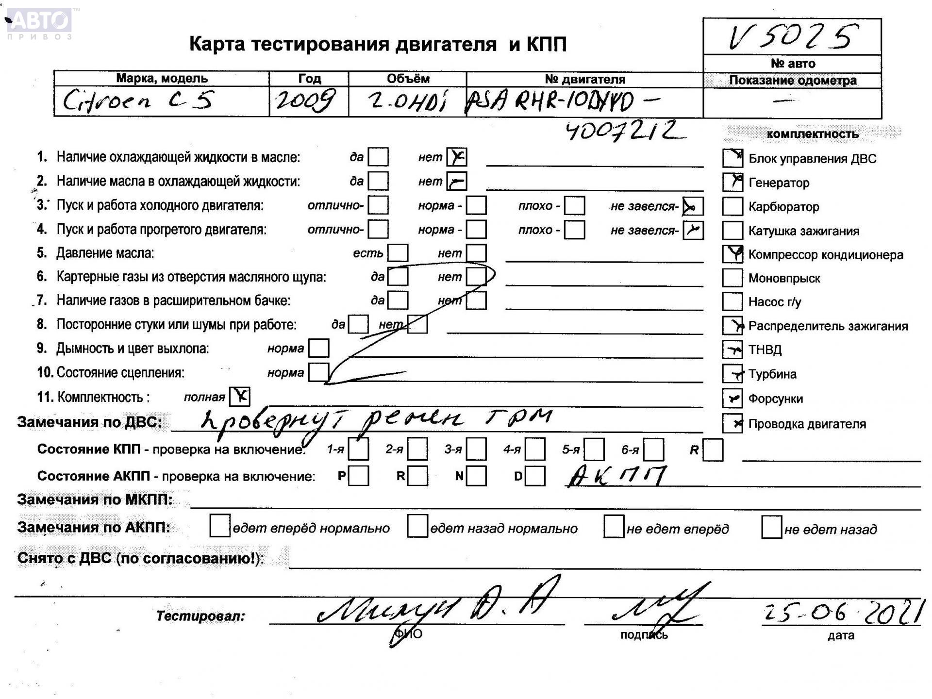 | Марка / Модель / Год: | Citroen C5 X7 (2008- ) 2009 |