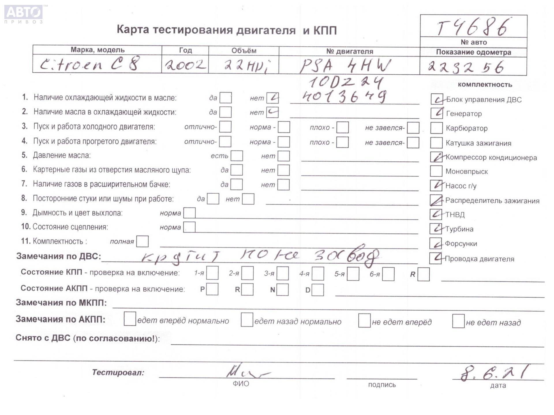 | Марка / Модель / Год: | Citroen C8 2003 |