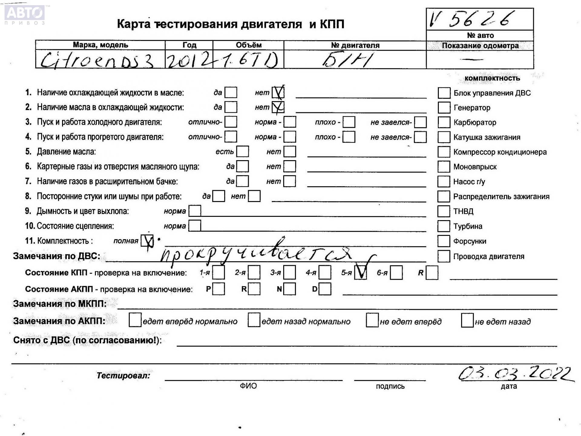 | Марка / Модель / Год: | Citroen DS3 2012 |