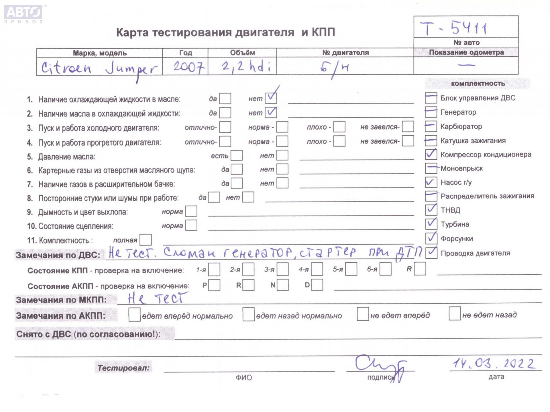 | Автомобиль / VIN: | T5411 VF7YABMRA11222334 |