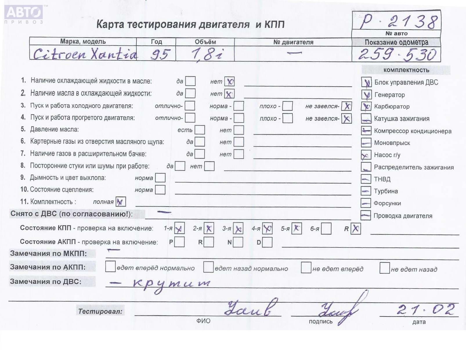 | Марка / Модель / Год: | Citroen Xantia 1995 |