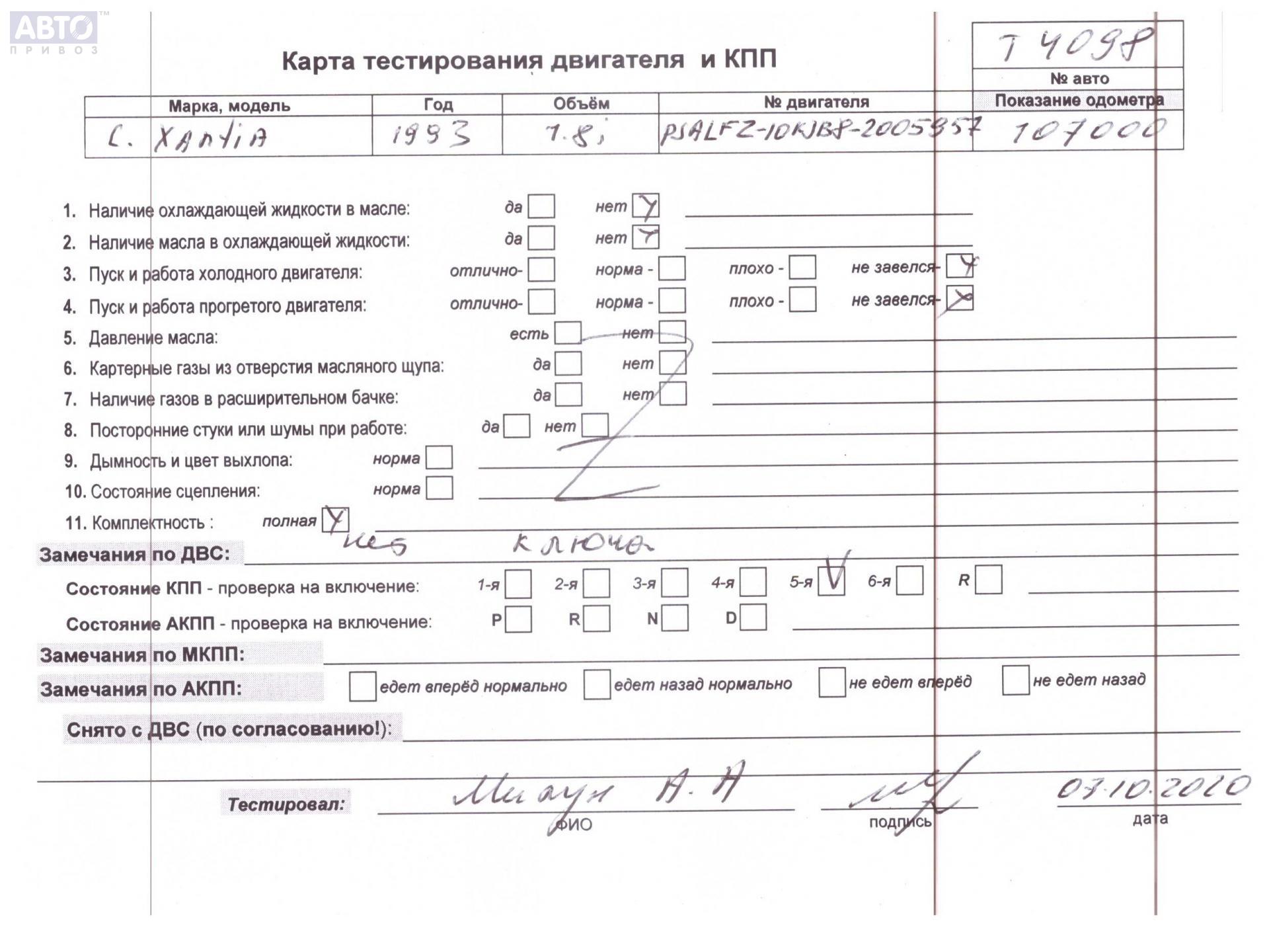 | Марка / Модель / Год: | Citroen Xantia 1993 |