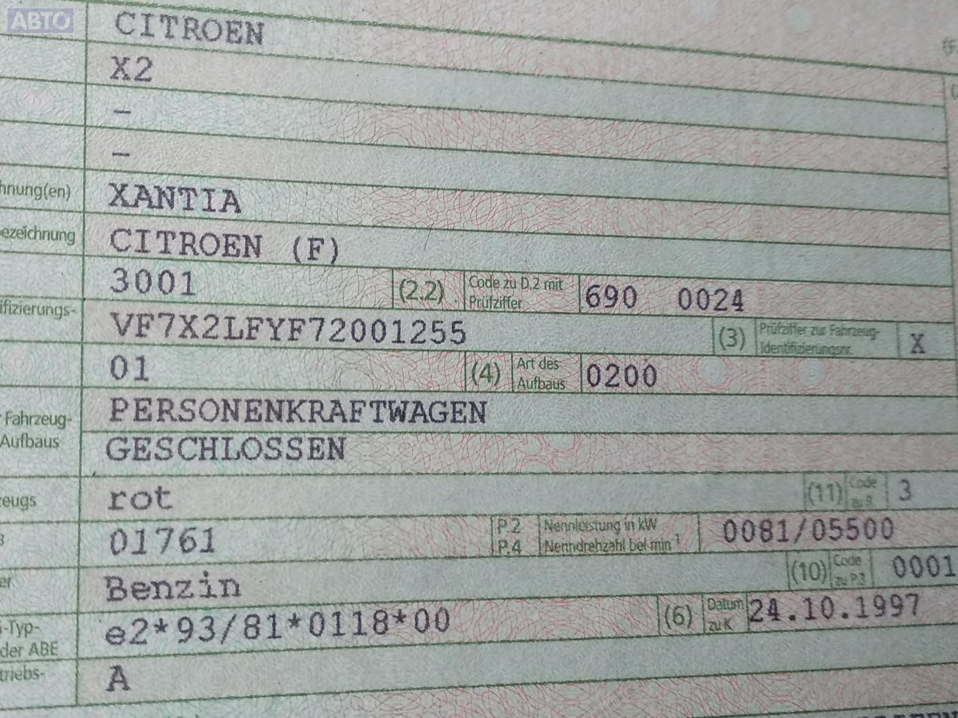 | Марка / Модель / Год: | Citroen Xantia 1997 |