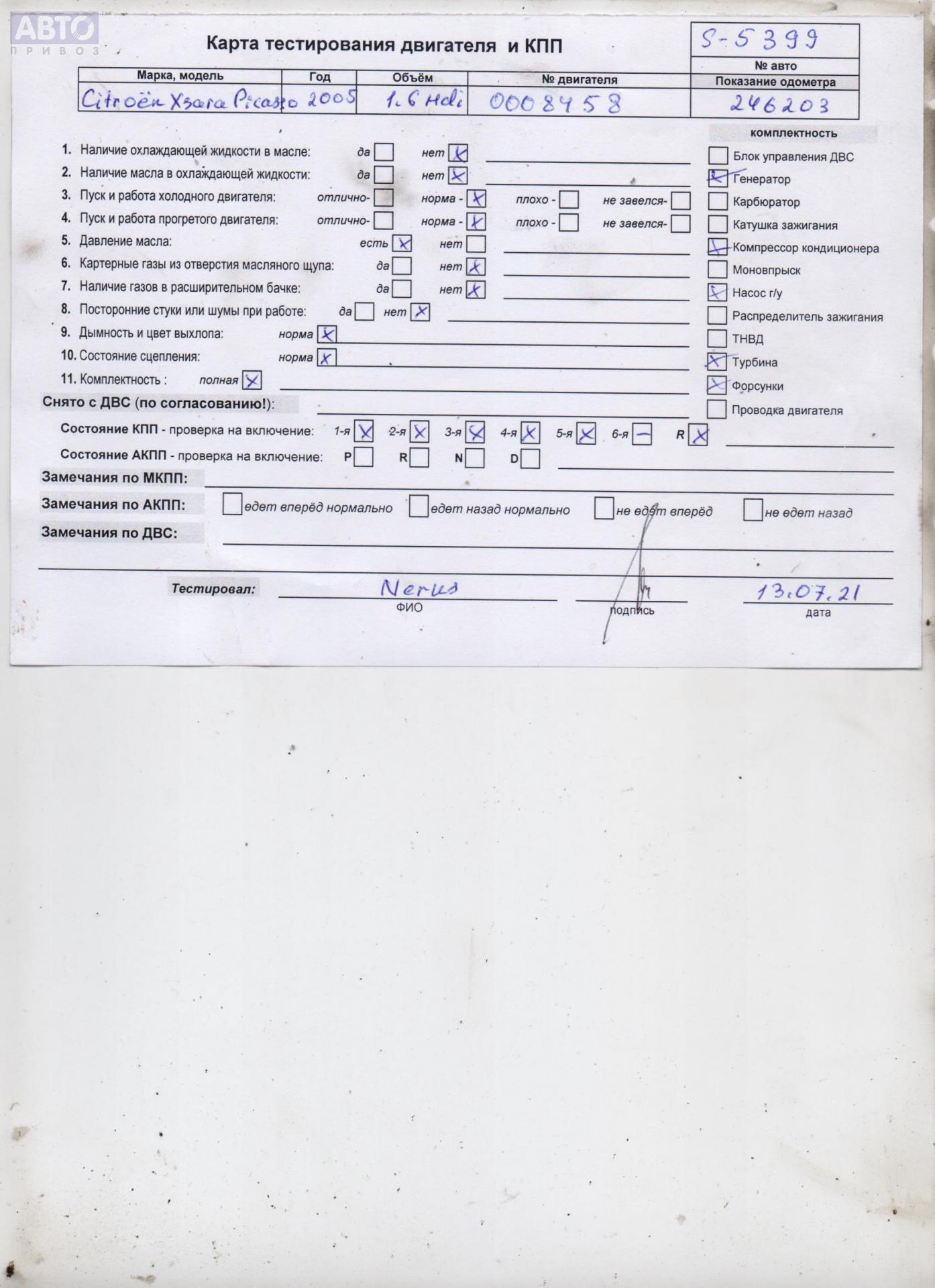 | Марка / Модель / Год: | Citroen Xsara Picasso 2005 |
