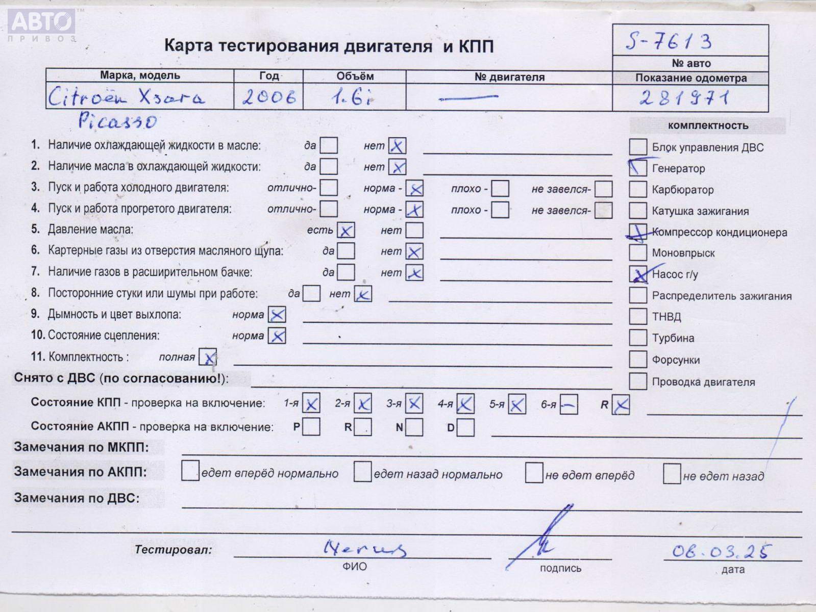 | Марка / Модель / Год: | Citroen Xsara Picasso 2006 |