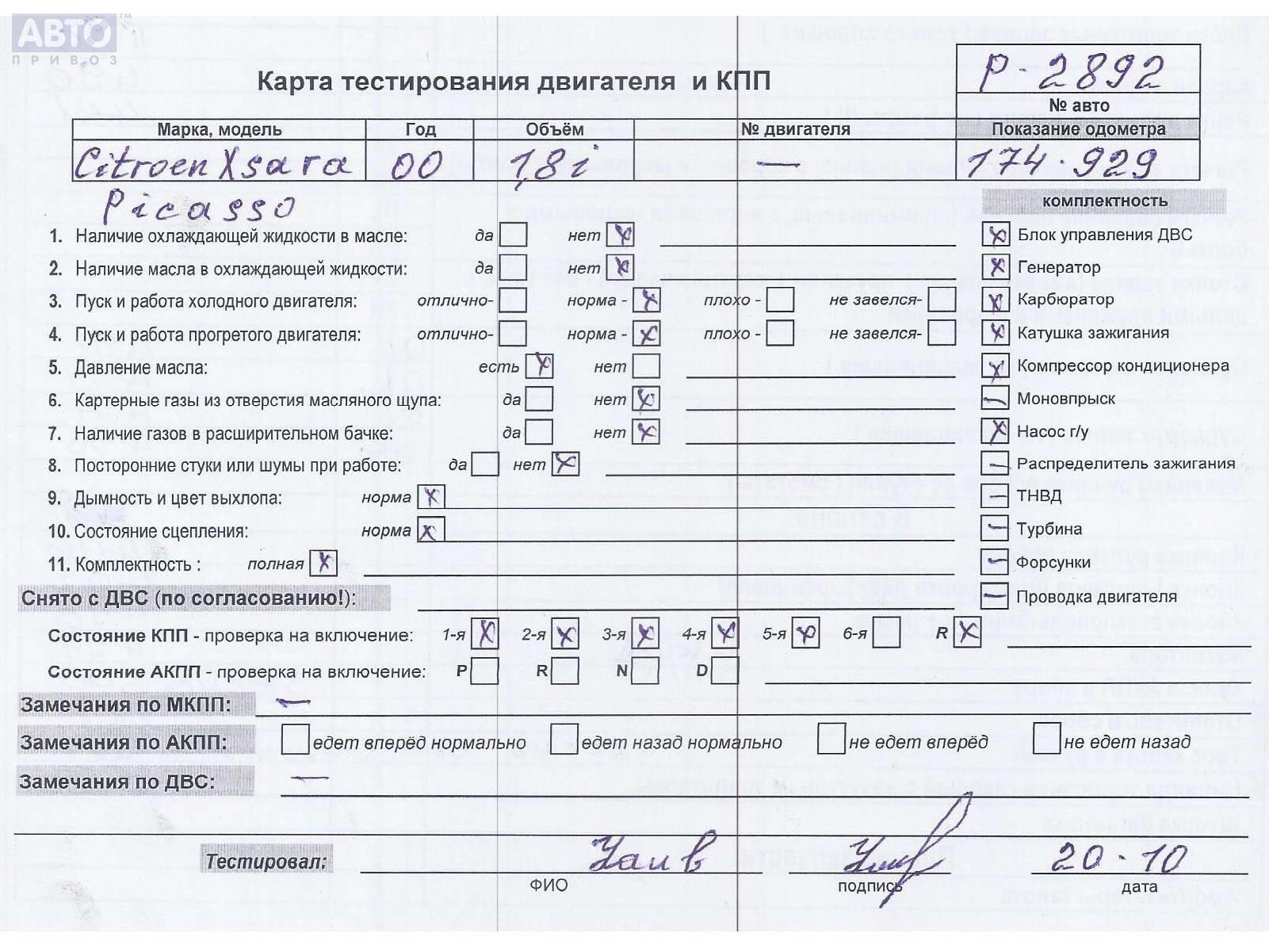 | Марка / Модель / Год: | Citroen Xsara Picasso 2000 |