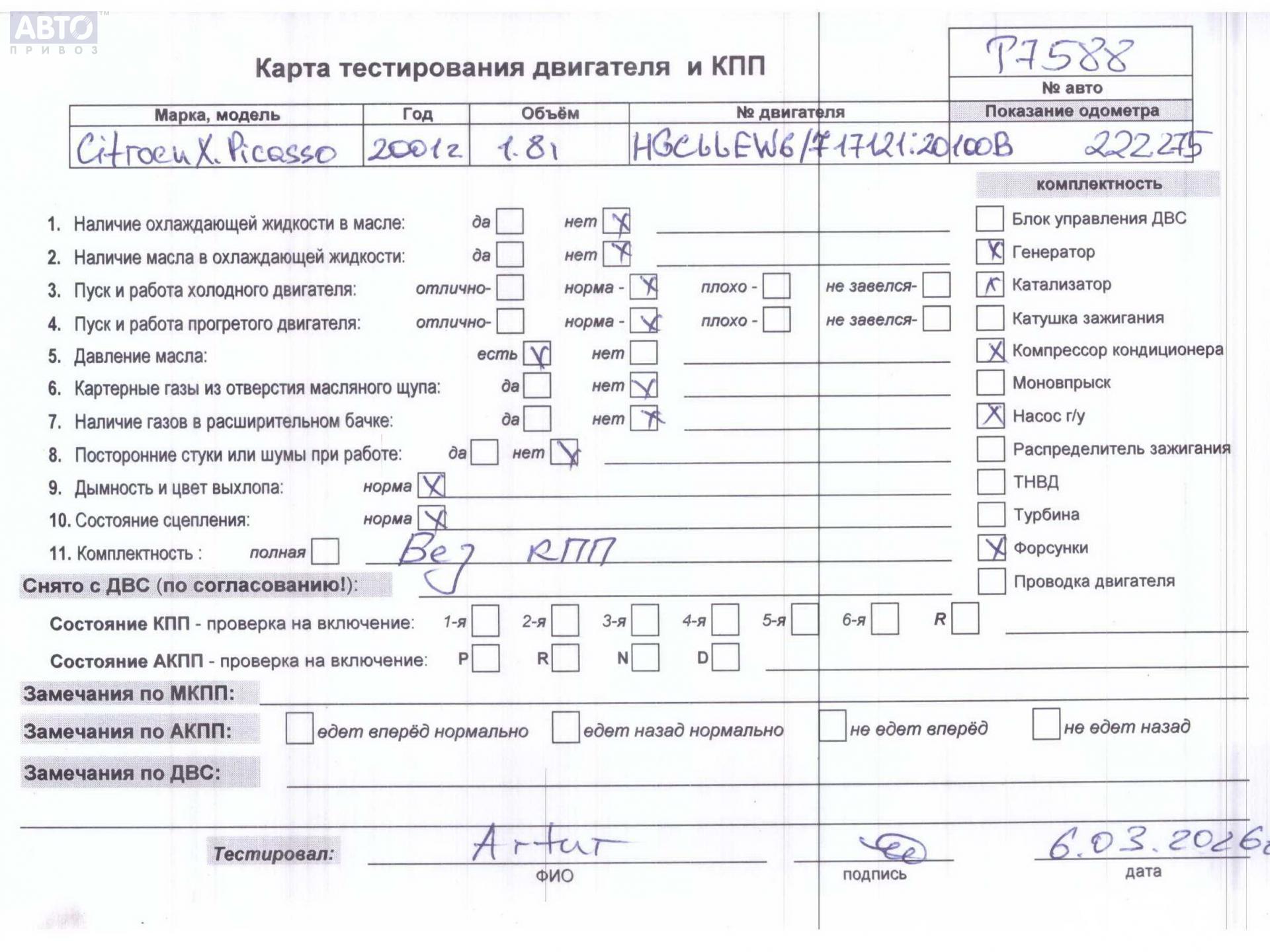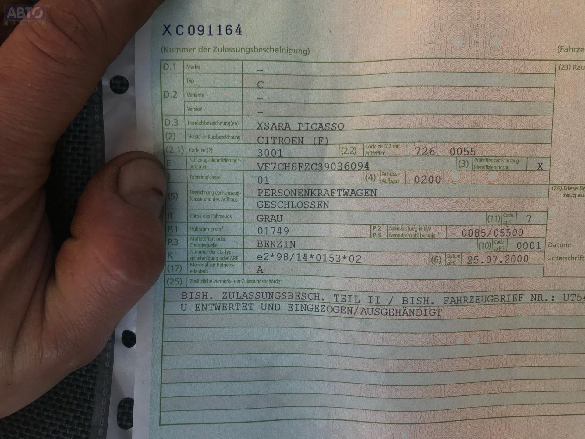 | Марка / Модель / Год: | Citroen Xsara Picasso 2001 |
