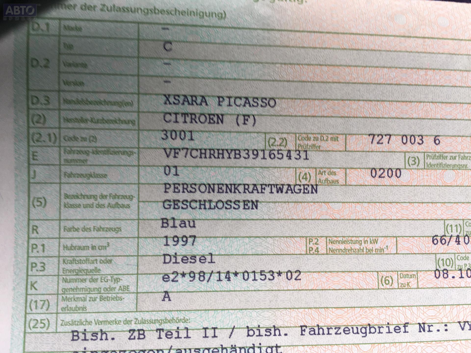| Марка / Модель / Год: | Citroen Xsara Picasso 2002 |
