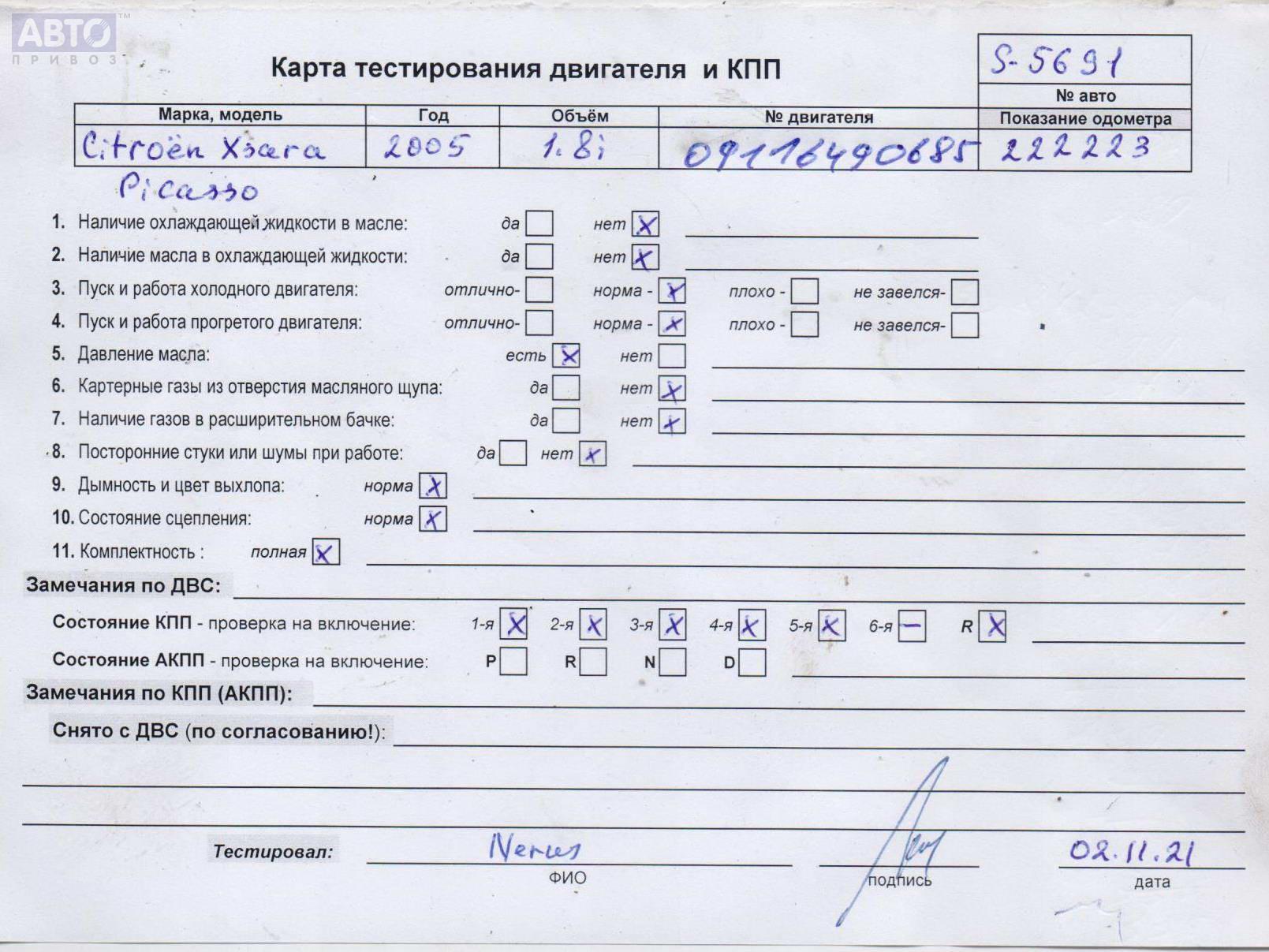 | Марка / Модель / Год: | Citroen Xsara Picasso 2005 |