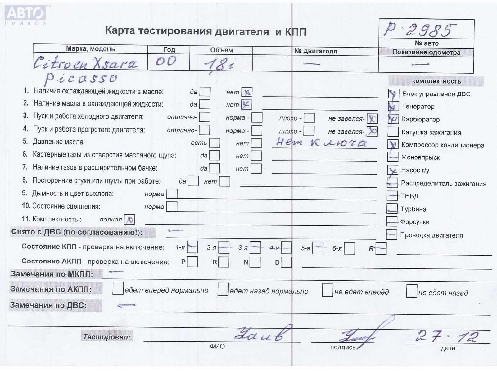 | Марка / Модель / Год: | Citroen Xsara Picasso 2000 |