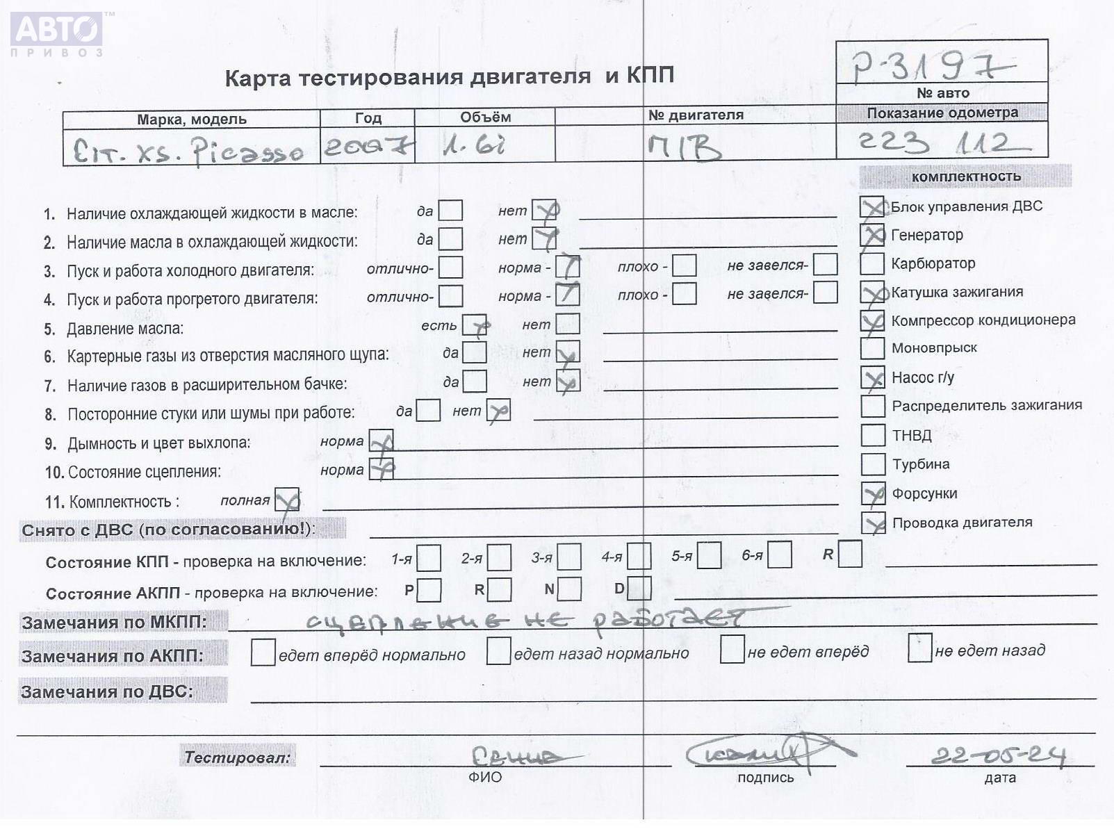 | Марка / Модель / Год: | Citroen Xsara Picasso 2007 |