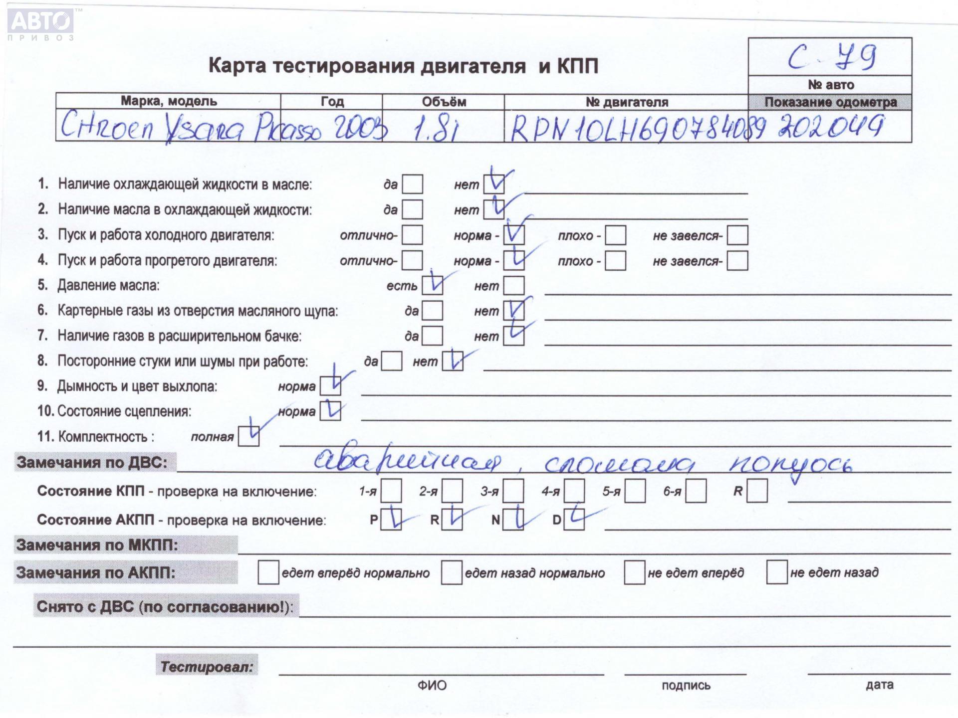 | Марка / Модель / Год: | Citroen Xsara Picasso 2003 |