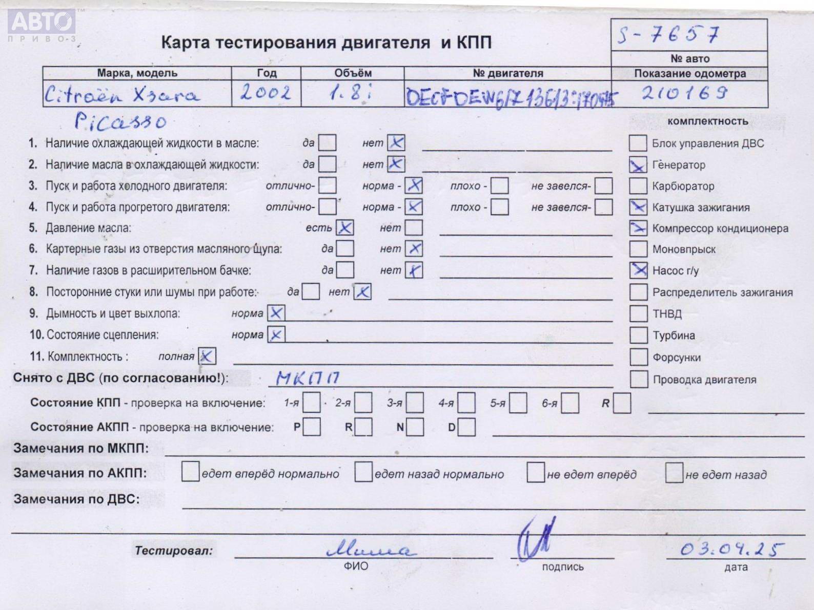 | Марка / Модель / Год: | Citroen Xsara Picasso 2002 |