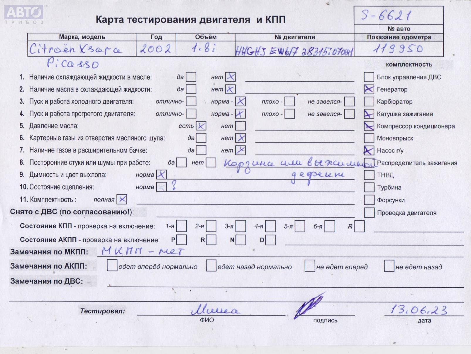 | Марка / Модель / Год: | Citroen Xsara Picasso 2002 |