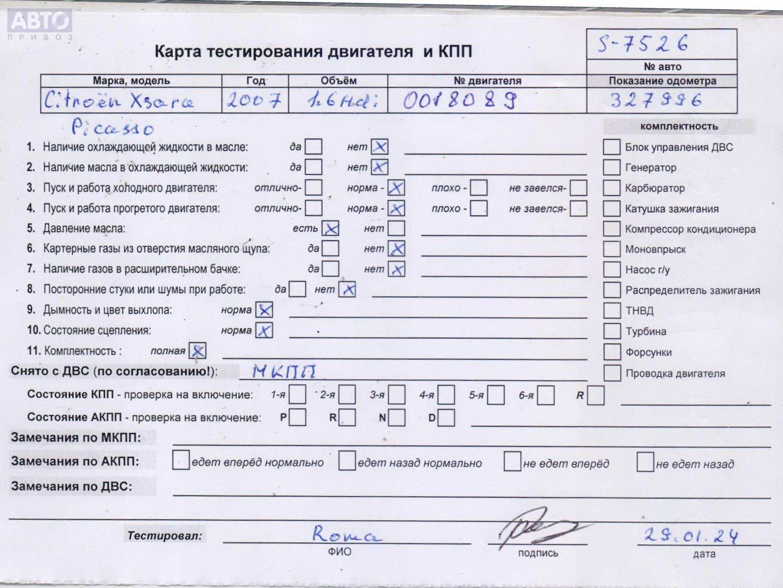 | Марка / Модель / Год: | Citroen Xsara Picasso 2007 |