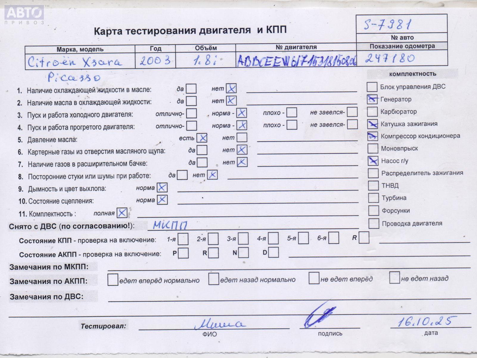 | Марка / Модель / Год: | Citroen Xsara Picasso 2003 |