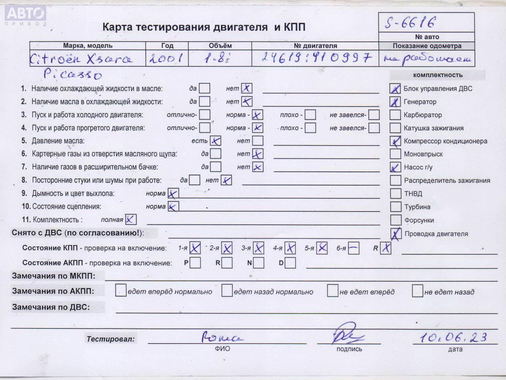 | Марка / Модель / Год: | Citroen Xsara Picasso 2001 |