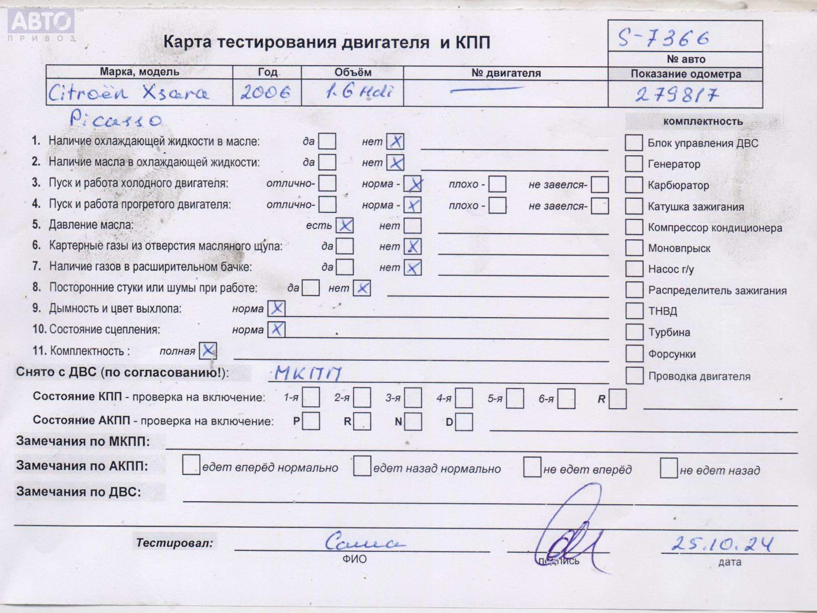 | Марка / Модель / Год: | Citroen Xsara Picasso 2006 |