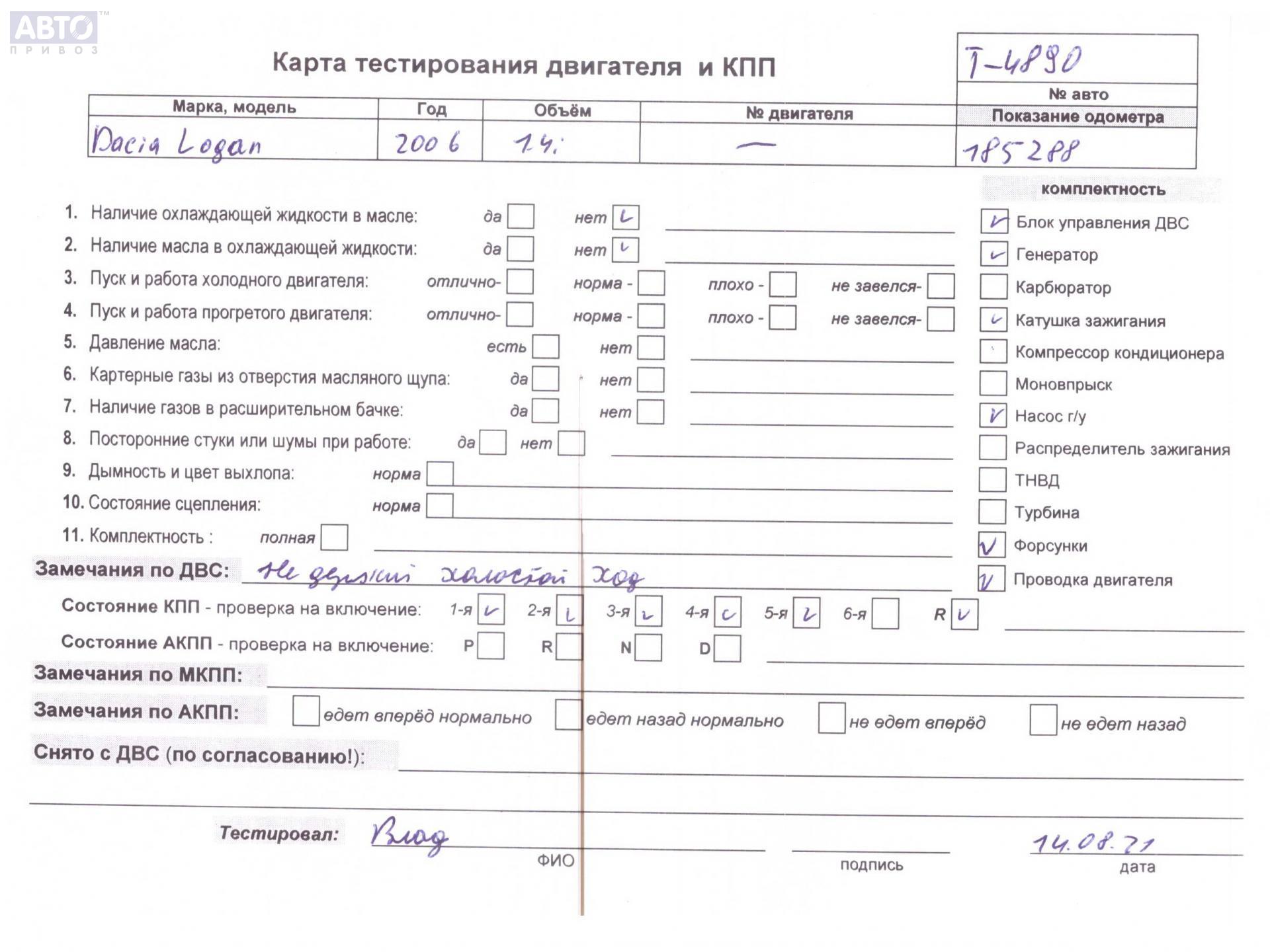 | Марка / Модель / Год: | Dacia (Renault) Logan 2006 |