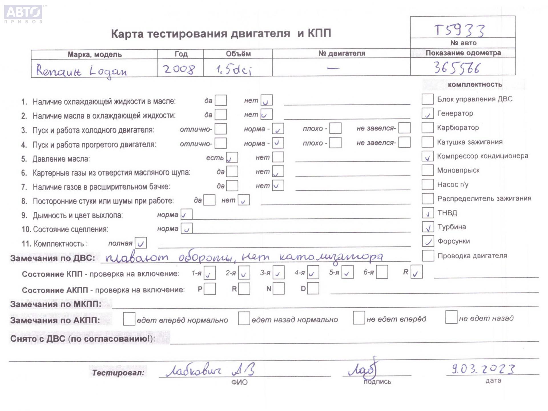 | Марка / Модель / Год: | Dacia (Renault) Logan 2008 |
