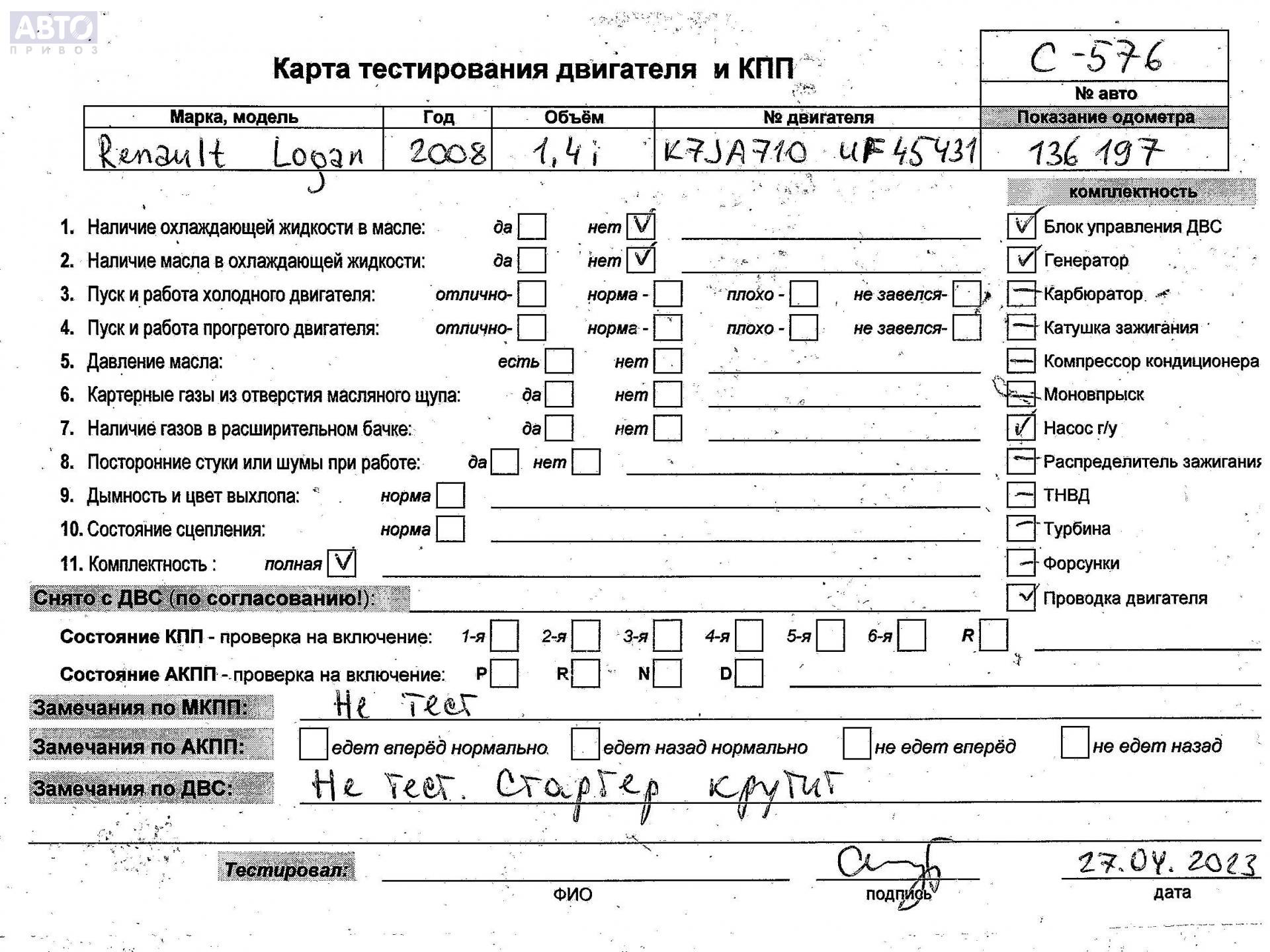 | Марка / Модель / Год: | Dacia (Renault) Logan 2008 |