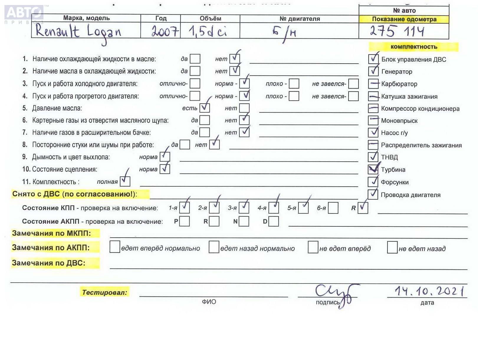 | Марка / Модель / Год: | Dacia (Renault) Logan 2007 |