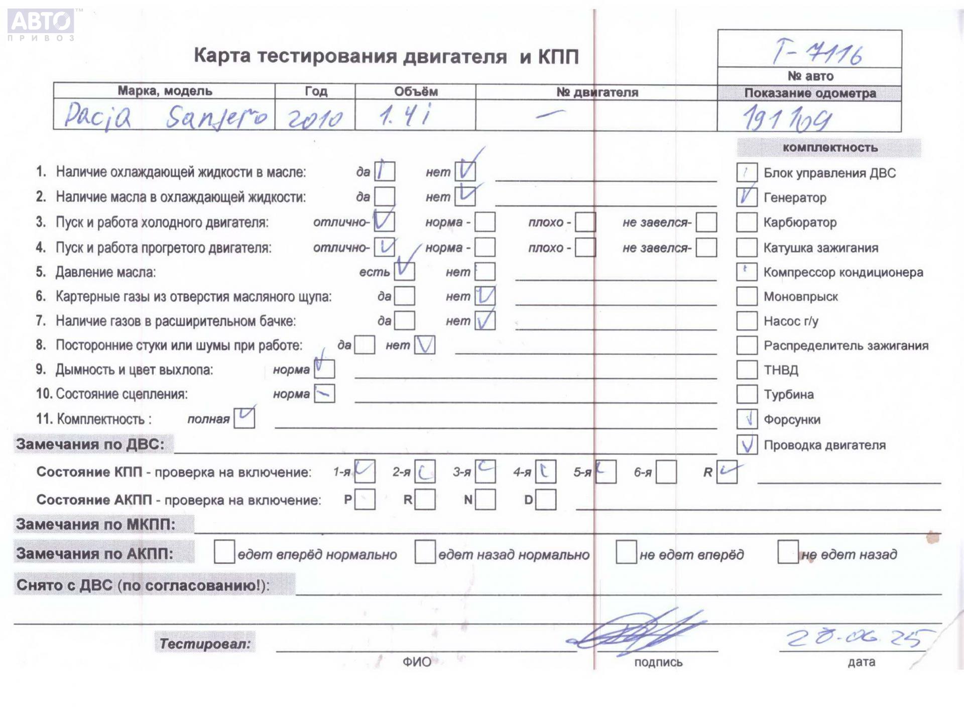 | Марка / Модель / Год: | Dacia (Renault) Sandero I (2008-2012) 2010 |