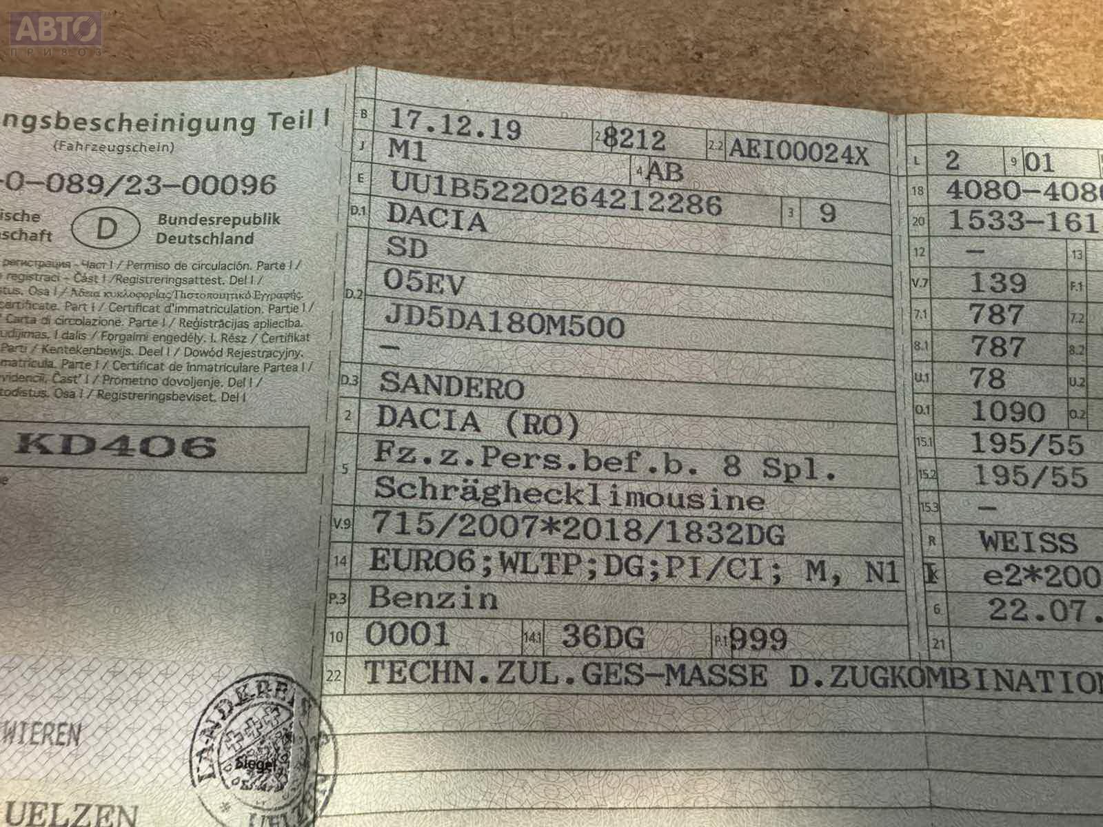 | Марка / Модель / Год: | Dacia (Renault) Sandero II (2012-2020) 2019 |