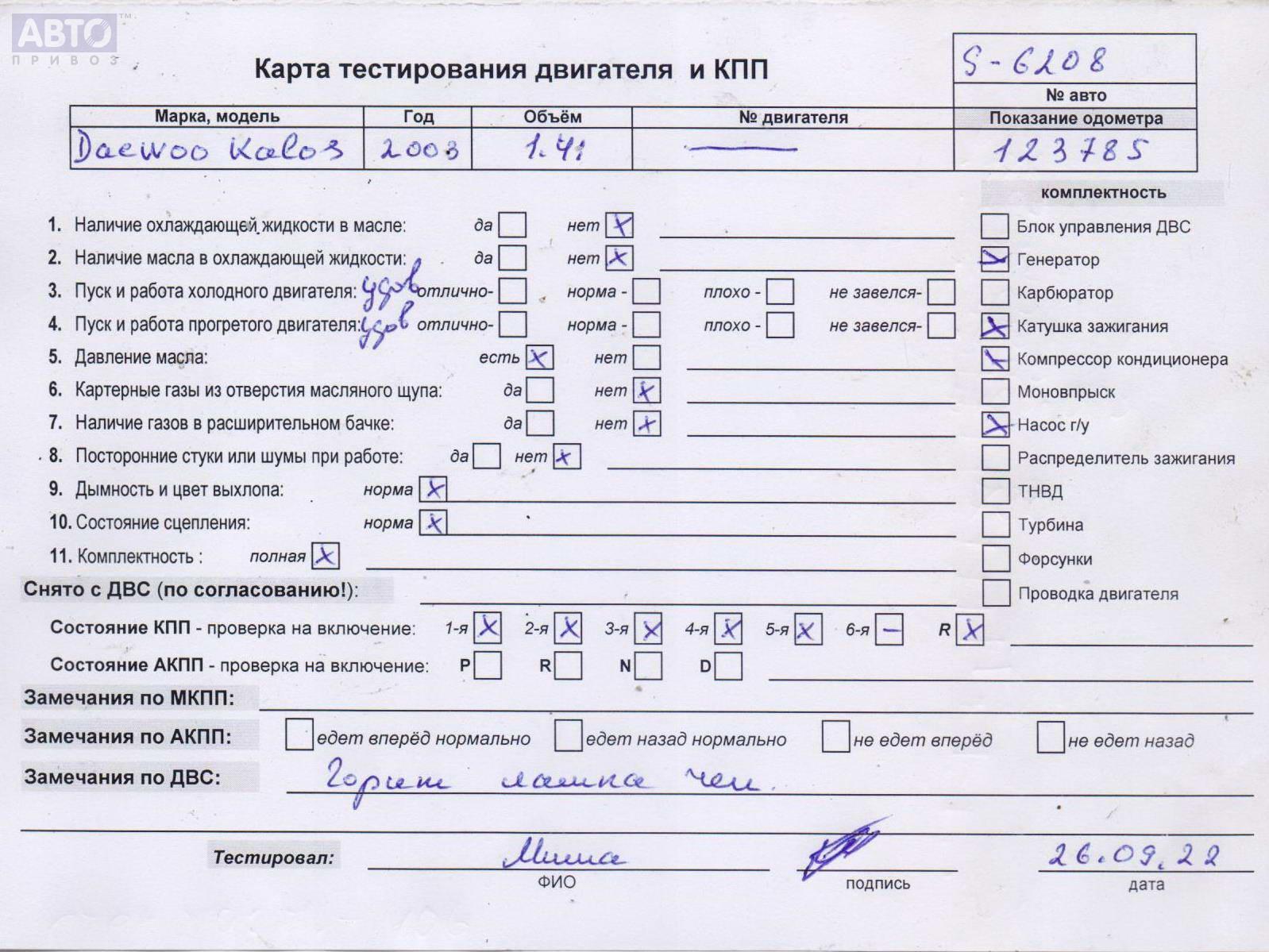 | Марка / Модель / Год: | Daewoo Kalos (Aveo) 2003 |