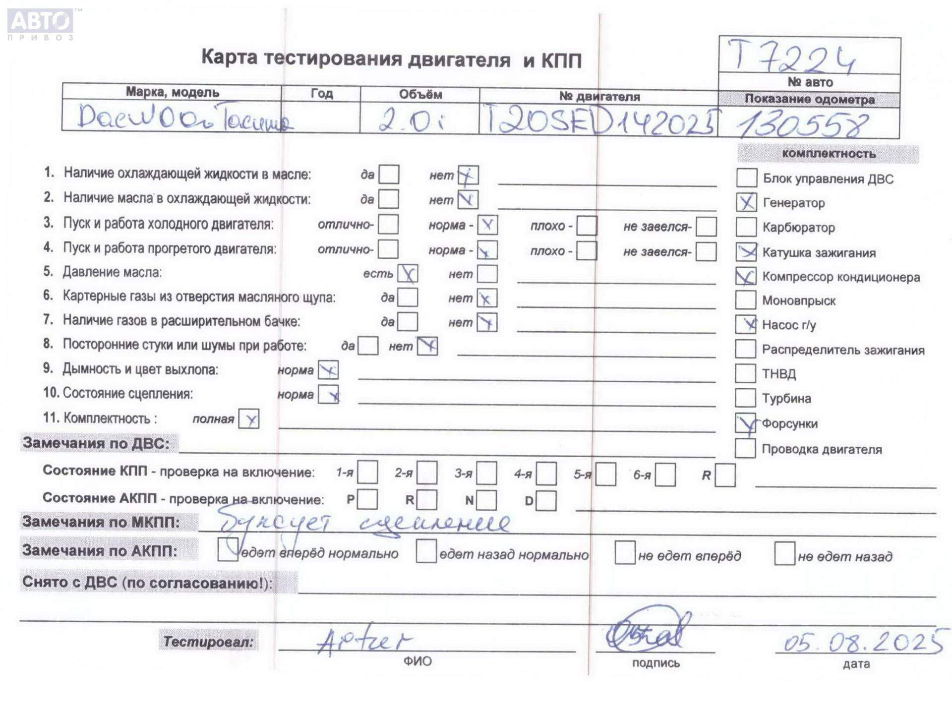| Марка / Модель / Год: | Daewoo Tacuma / Rezzo 2004 |
