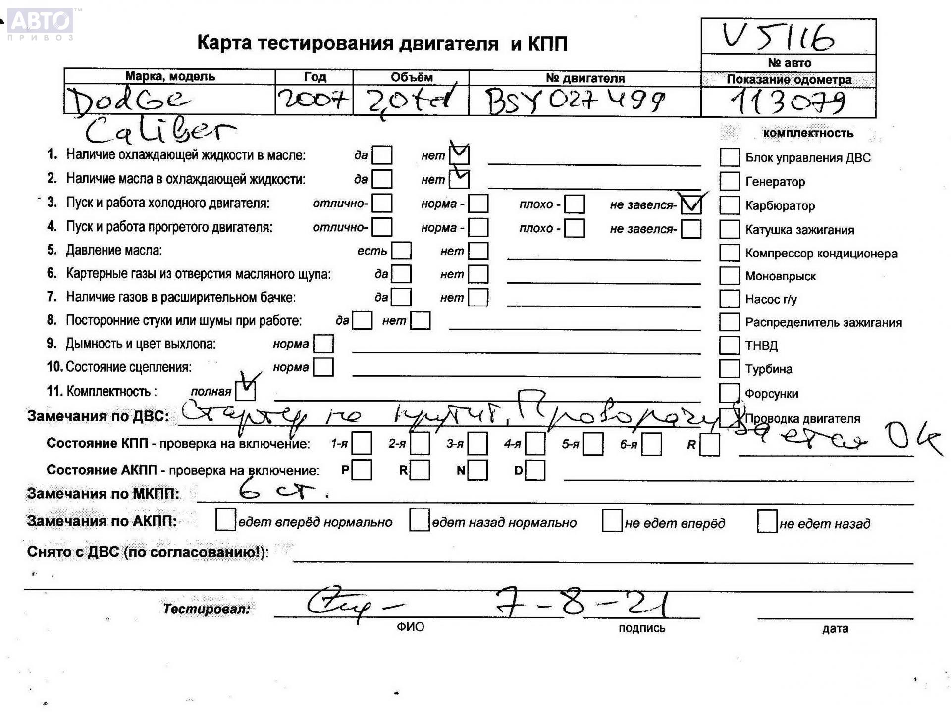 | Марка / Модель / Год: | Dodge Caliber 2006 |