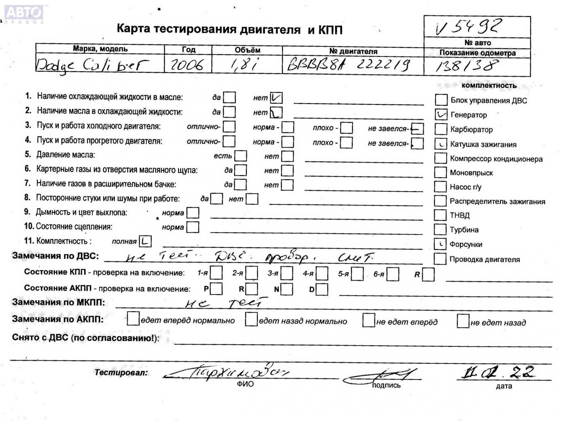 | Марка / Модель / Год: | Dodge Caliber 2006 |