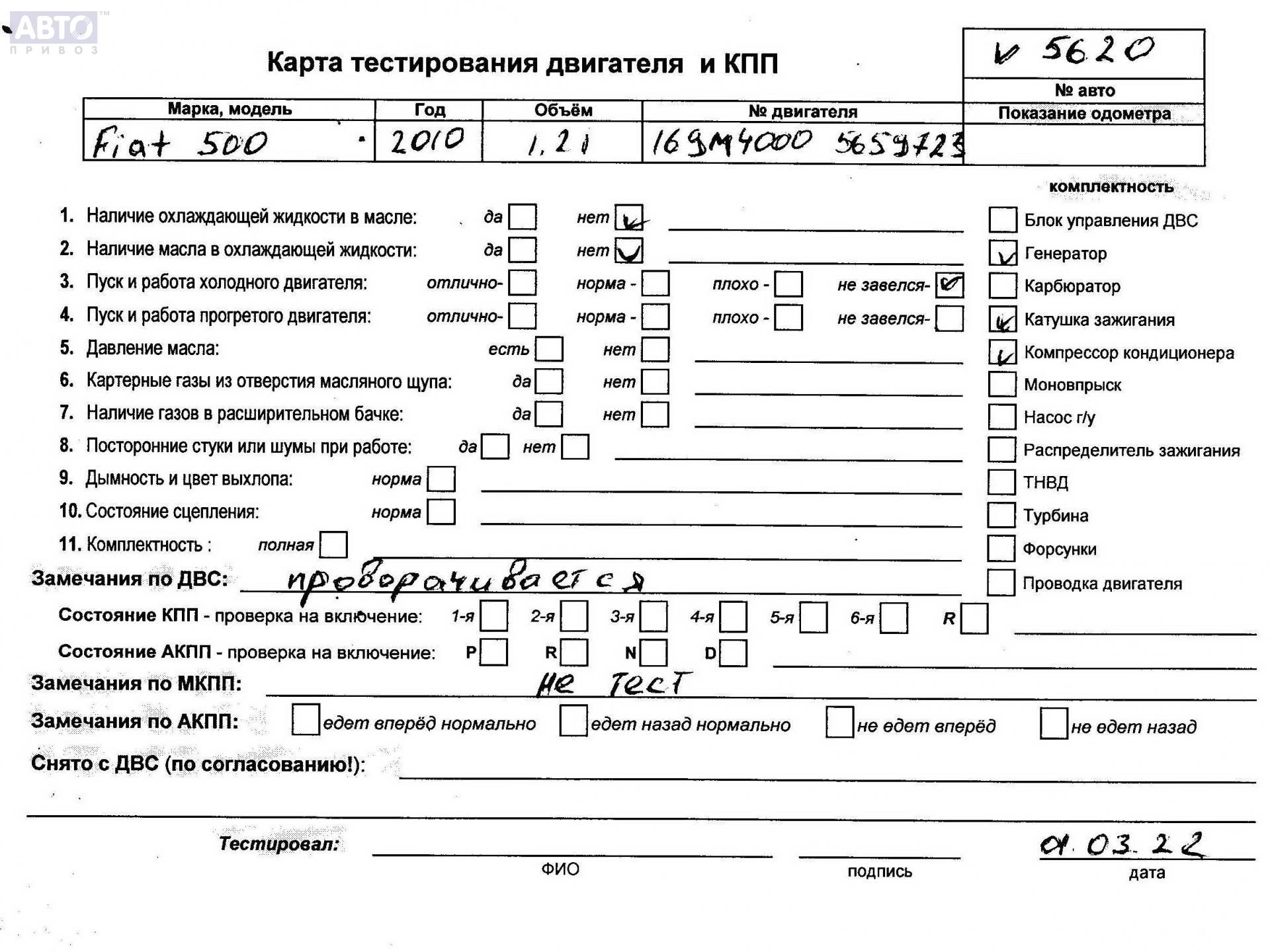 | Марка / Модель / Год: | Fiat 500 2010 |