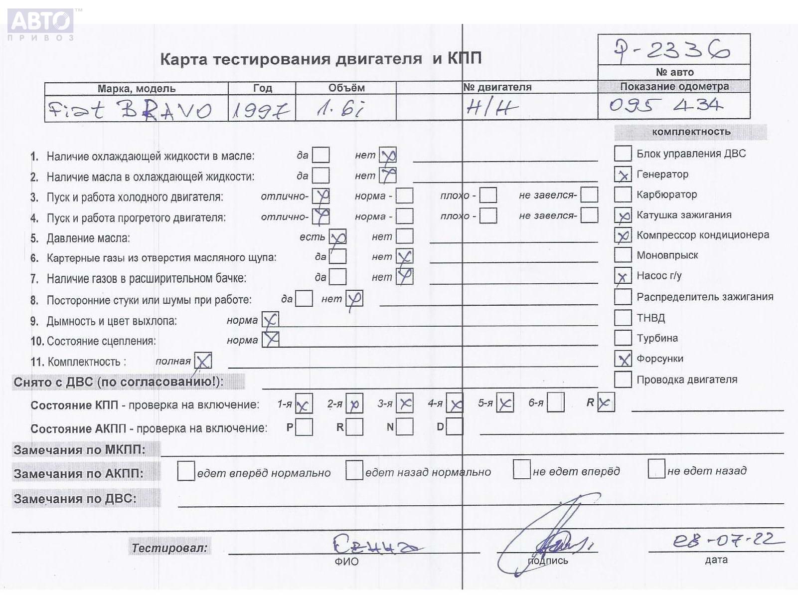 | Марка / Модель / Год: | Fiat Bravo (1995-2001) 1997 |