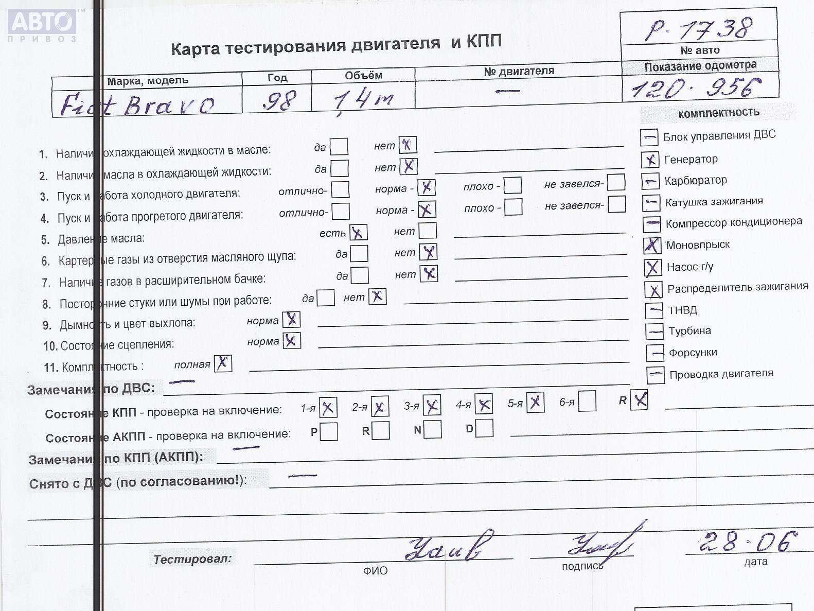 | Марка / Модель / Год: | Fiat Bravo (1995-2001) 1998 |