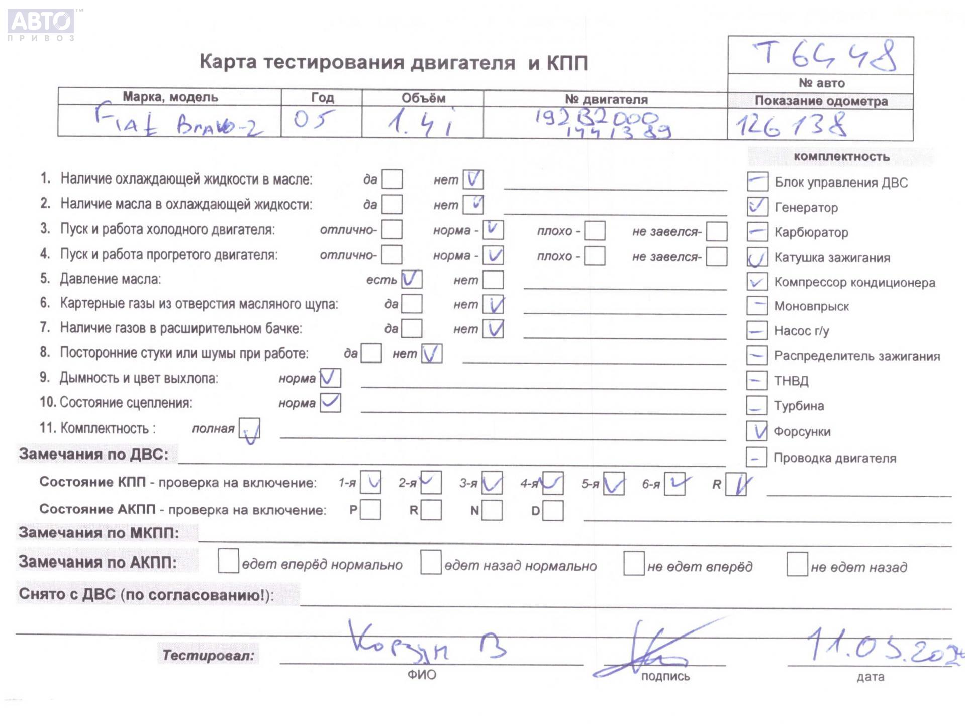 | Марка / Модель / Год: | Fiat Bravo (2007-2016) 2009 |
