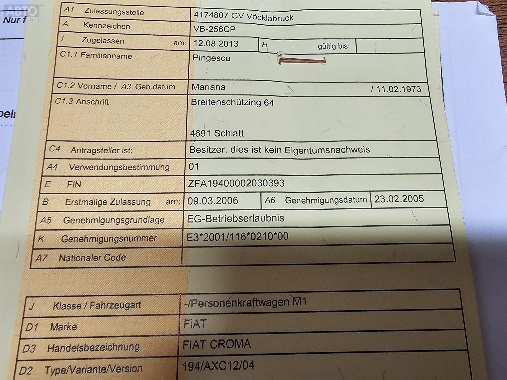| Автомобиль / VIN: | T6685 ZFA19400002030393 |