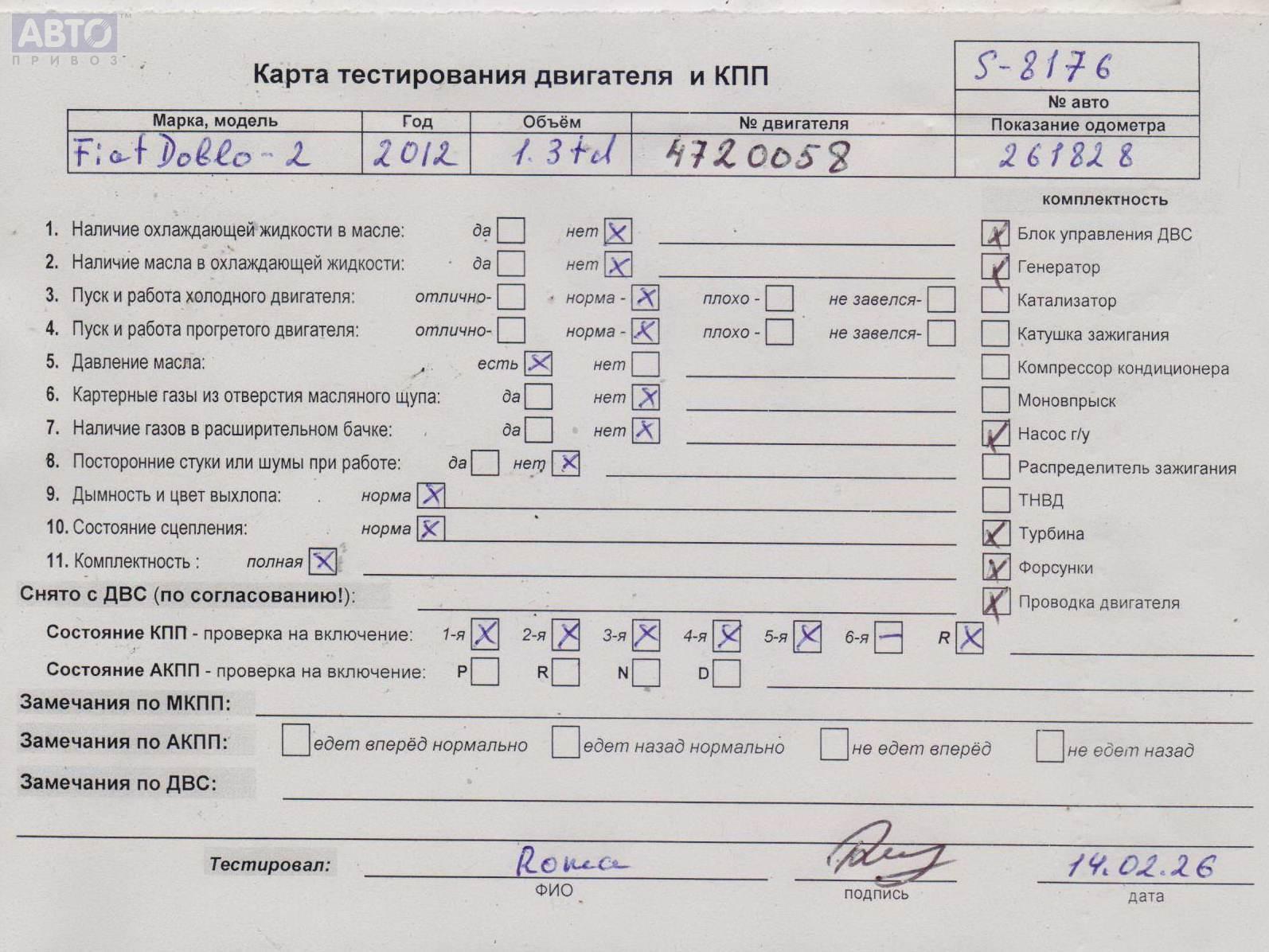 | Автомобиль / VIN: | S8176 ZFA26300009195039 |