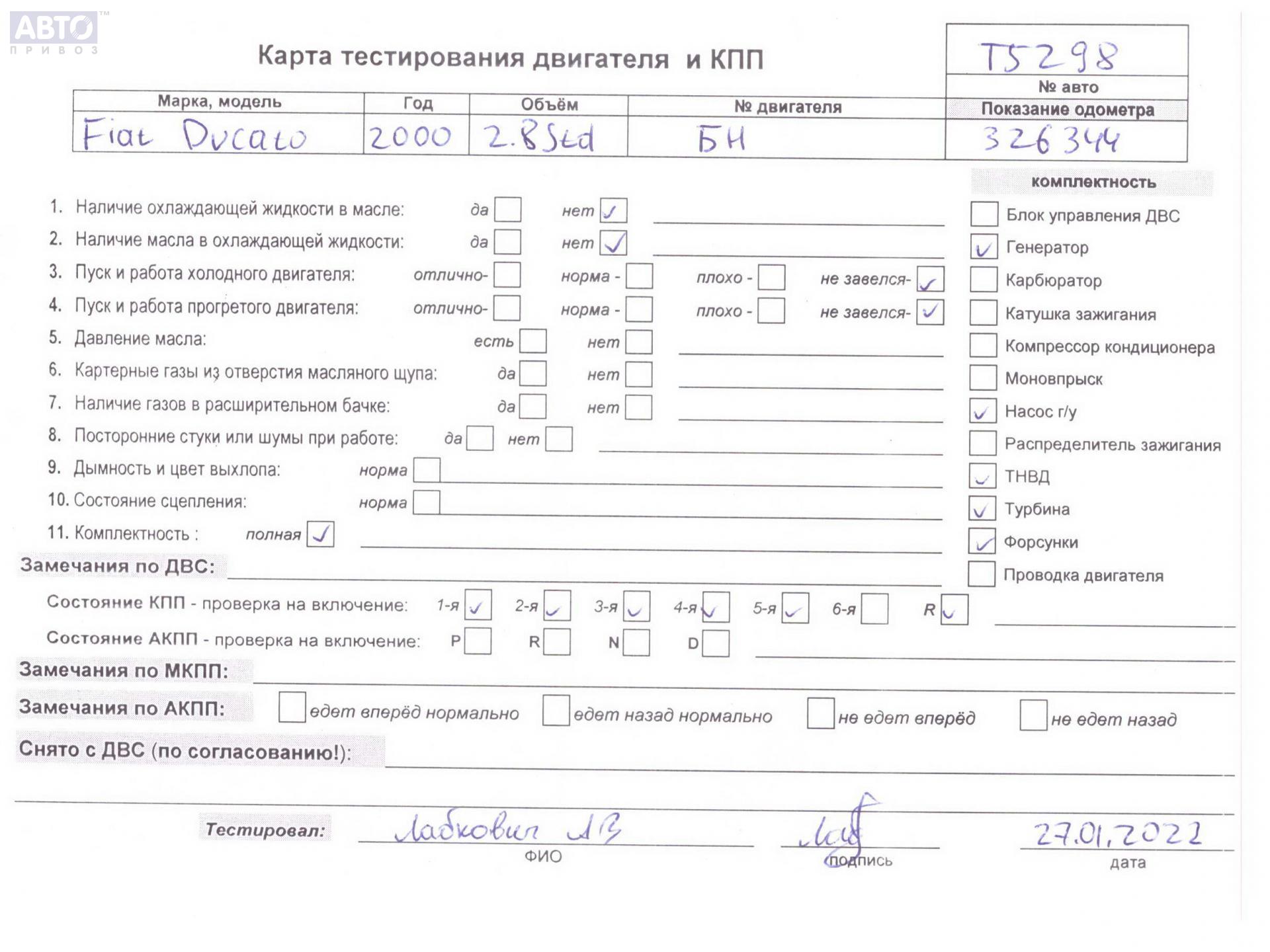 | Автомобиль / VIN: | T5298 ZFA23000006033130 |