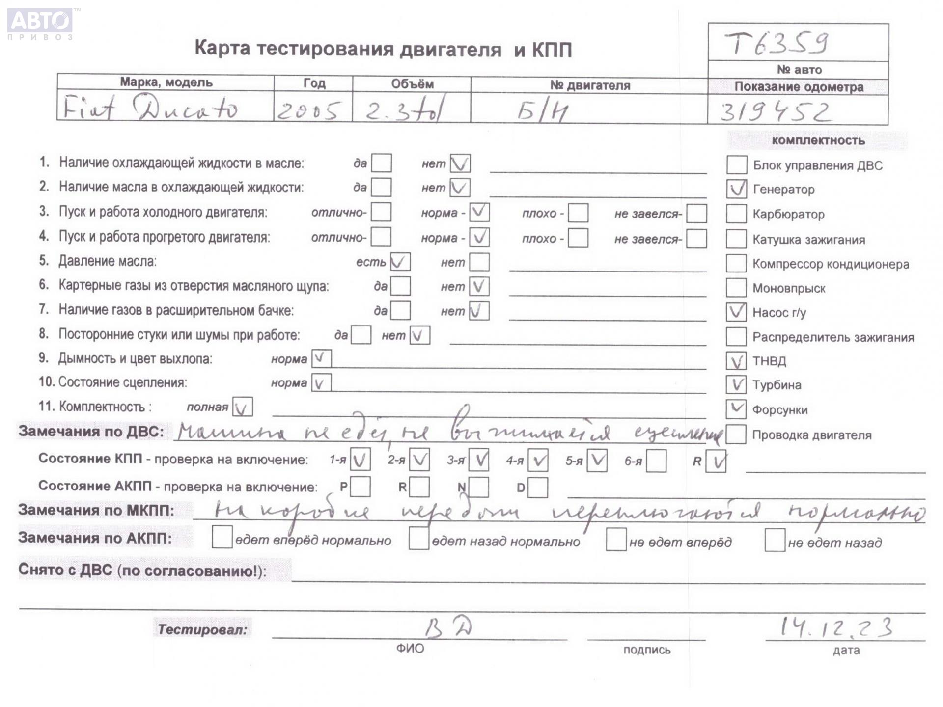 | Марка / Модель / Год: | Fiat Ducato (2002-2006) 2005 |