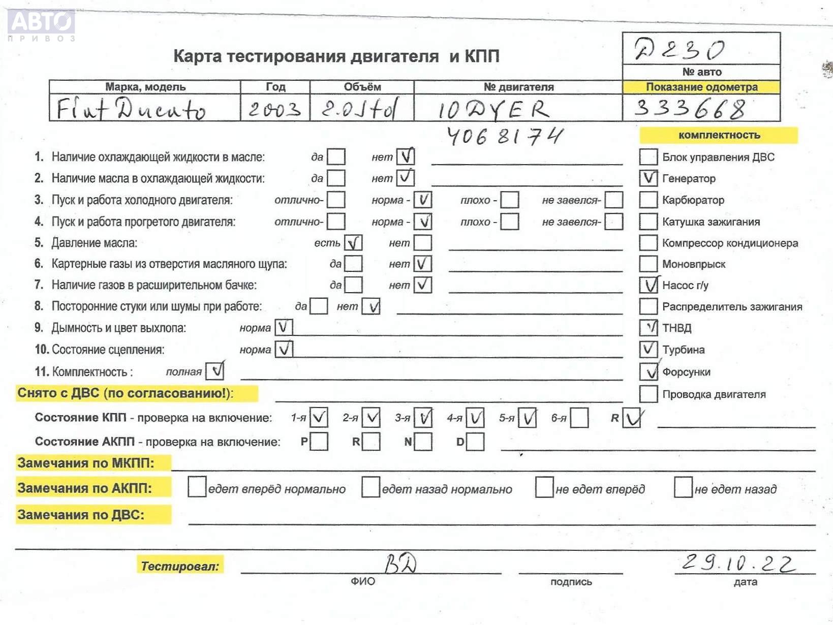 | Марка / Модель / Год: | Fiat Ducato (2002-2006) 2003 |