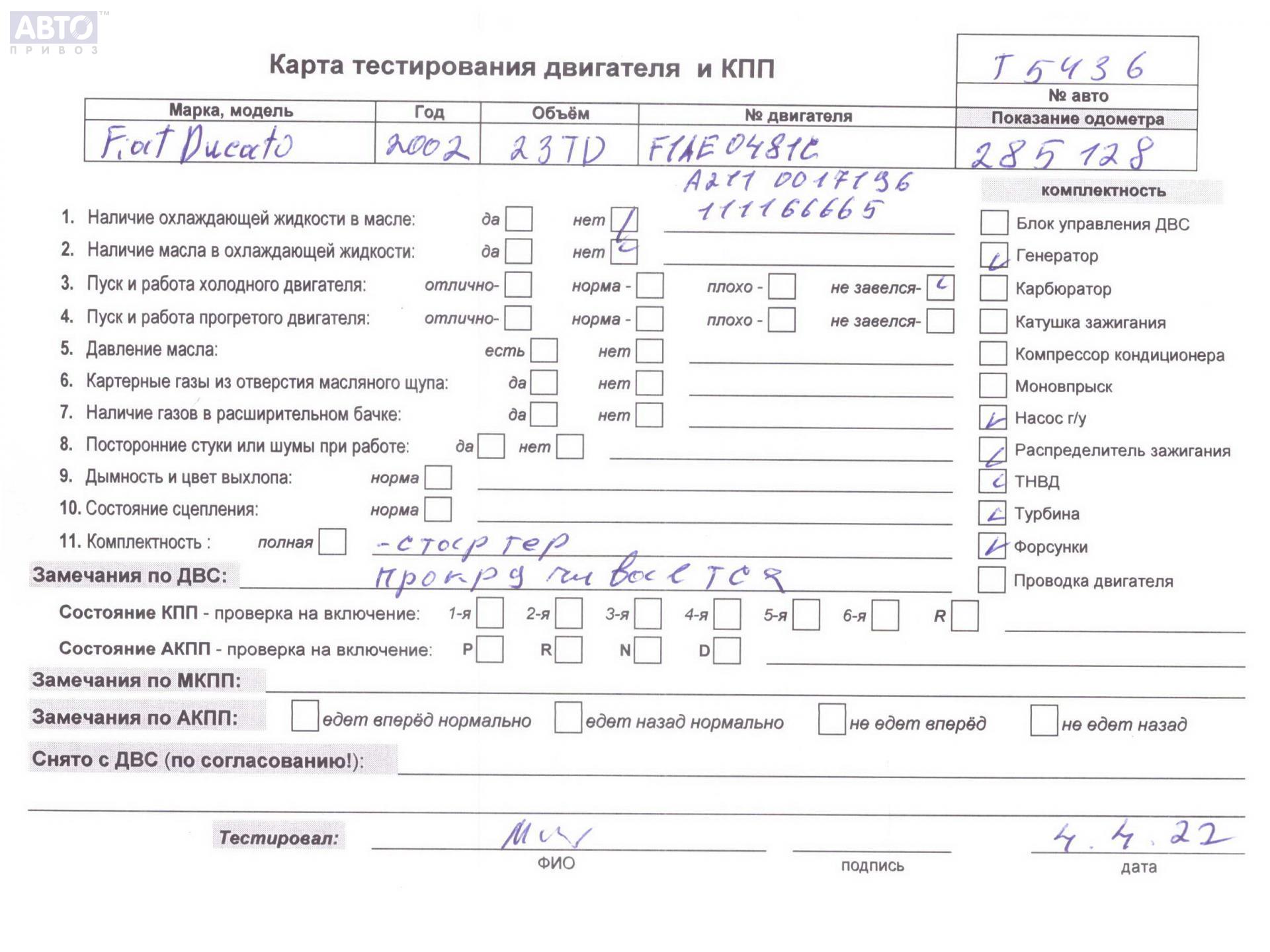 | Автомобиль / VIN: | T5436 ZFA24400007111265 |