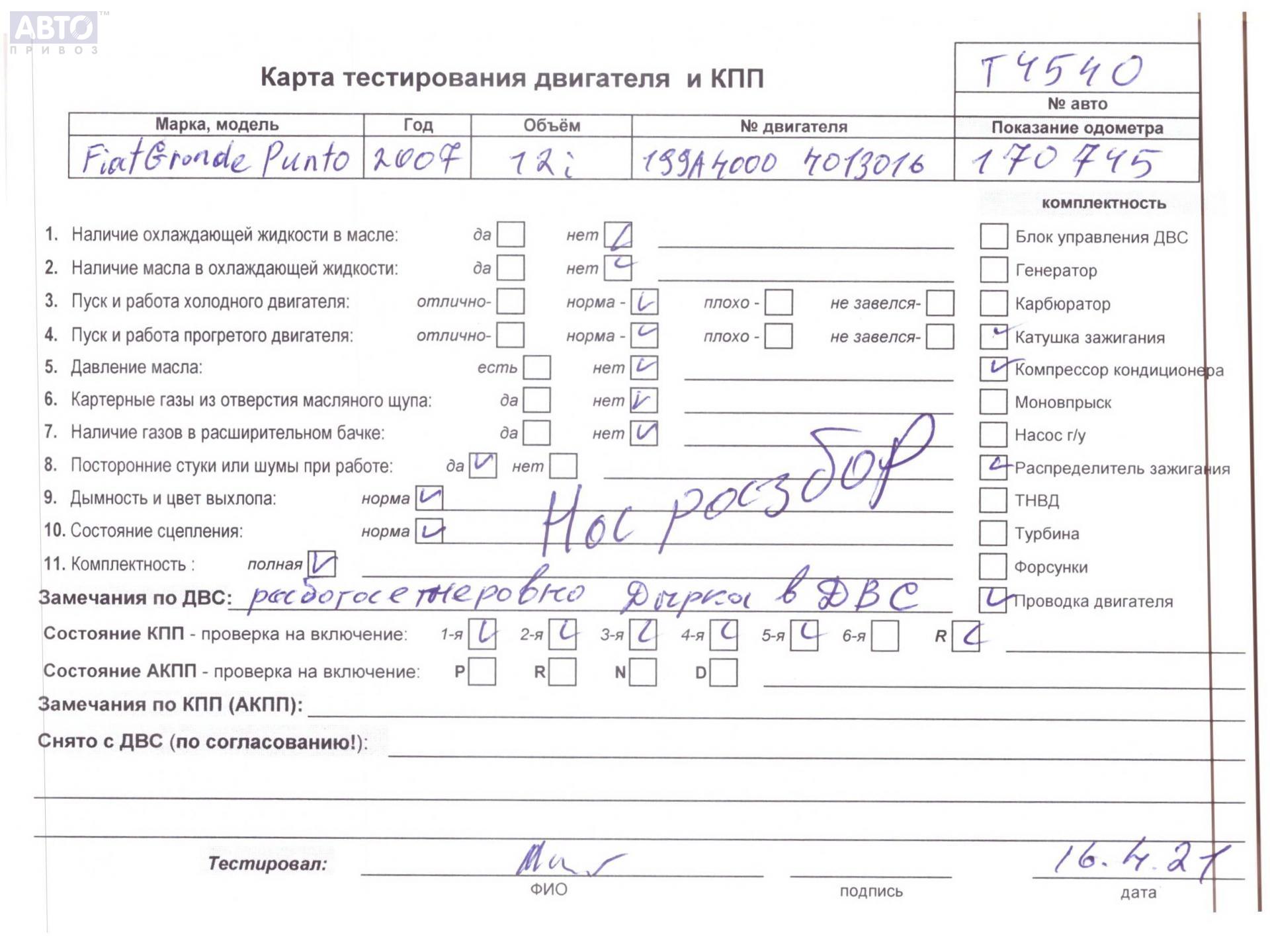 | Марка / Модель / Год: | Fiat Grande Punto 2007 |