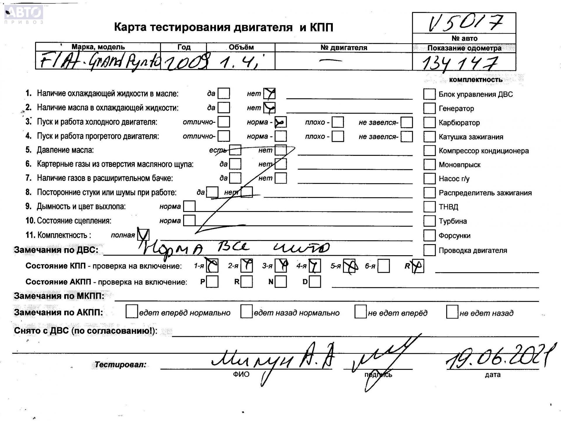 | Марка / Модель / Год: | Fiat Grande Punto 2009 |