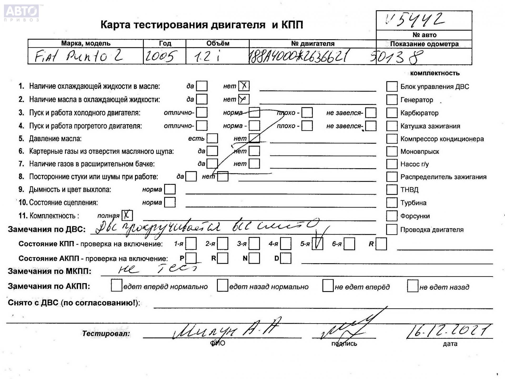 | Марка / Модель / Год: | Fiat Punto II (1999-2005) 2005 |